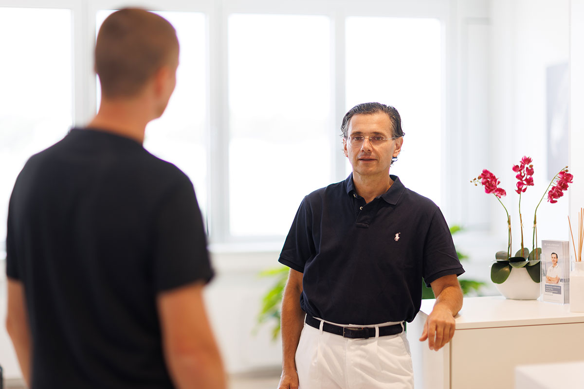 Nach einer ausführlichen Anamnese erfolgt eine Begutachtung der Venensituation sowie eine Ultraschalluntersuchung der Stammvenen. Im Anschluß wird gemeinsam das individuell notwendige Behandlungskonzept besprochen und das weitere Vorgehen geplant. Die Verödung führe ich in meiner Ordination durch, die Operationen erfolgen im OP im Zentrum , wobei ein erfahrener Anästesist die Narkose durchführt.